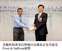 2007 Frost & Sullivan產業科技類別「數位影像監控產品創新獎」於上週頒發給奇偶科技,表揚該公司在數位影像監控產品與技術創新所作的努力。